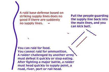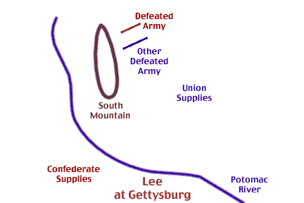 A Less than Optimal Raid Grant once ordered Sheridan to put his army south of the enemy, and follow him to the death. Here, Lee has the disadvantage of strategic interior lines. Once he invades the North, there is only one direction he can move towards to gather supplies. Once Meade threatens battle, Lee must concentrate to battle, and the raiding for food stops. The army starts getting hungry. Once a battle is forced, unless it is a very quick and easy victory, Lee will deplete his ammunition. At that point, a retreat back south is necessary.