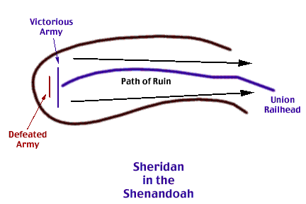 A Good Situation for Raiding Sheridan burning the Shenandoah Valley illustrates a decent situation for loot and burn big army strategic raiding. The opponent isn't a major threat. He was defeated before the raid started. A rearguard action keeps him from pushing battle. If he really wants to fight, Sheridan could do so with few supply difficulties. The Confederate force, even on its own turf, has the greater supply difficulty. They are marching in pursuit, over ground already burned.
