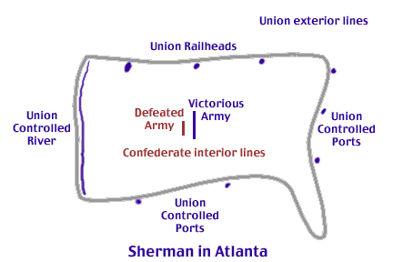 The above assumes one is seeking victory by destroying the enemy's infrastructe necessary to the waging of war. There are other approaches. One could attempt to destroy the enemy's war fighting capability. To some degree Grant tried this, bleeding the southern army through continuous battle. One could try to destroy the enemy's will to fight. The South attempted this. Their best hope was to convince the voters to vote Lincoln out of office in 1864.