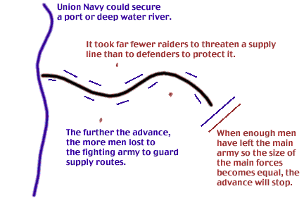 The bad news is that when Sherman got a strong army to the middle of the internal lines, no matter which way he went there was a Union supply point. Even if the South had scratched together enough men to force a battle, he could change course, head to another supply point, skirmish with rearguards, and otherwise loot, destroy and burn.
