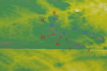 There is a purple III located at the Peach Orchard. This is Sickles' III corps position on July 2. Again, the blue positions are July 3.