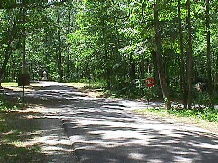 Devil's Den, the Wheat Field and the Peach Orchard are separated by bands of fairly heavy woods. This shot is representative of the wooded terrain which divides the famous stronghold positions. These pictures were taken on July 12 and 13, 1999. The foliage density should be fairly representative of the time. Of course, the Confederates would have encountered fewer Park Service roads and stop signs.