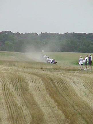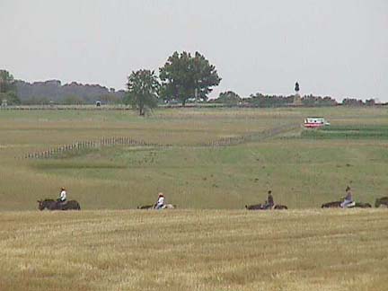 It is often noted in the old histories that armies can be spotted first by the cloud of dust they raise. Accounts also tell that breathing this dust on the march is a hazard. As I reached the Virginia monument, a small "cavalry" force, less than two dozen, approached. Multiply the above dust cloud by a factor of a thousand, then imagine breathing it while marching 30 miles in 90 degree heat...