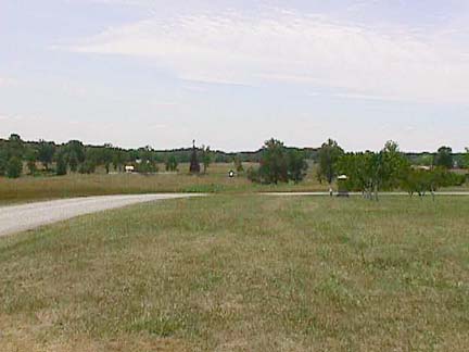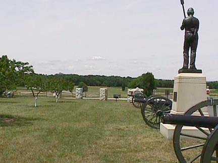 Looking West, the artillery was apparently deployed on the top of the ridge. One can barely see the land dropping beyond the guns, and to the left.