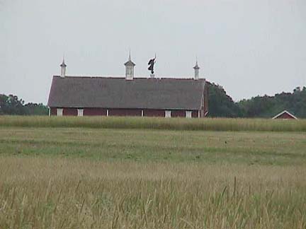 8 Right Zoom. A closer look at the Codori barn. That's the statue on top of the Pennsylvania monument showing over the barn.