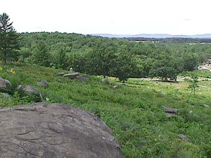 One other thought. While Little Round Top is a solid defensive position, an attack from here to Devil's Den would be hazardous. If the Army of the Potomac had any thought of attacking, taking Devil's Den while it was as yet unoccupied would not be stupid. However, with the possible exception of Sickles, no one in the Army of the Potomac was thinking offensively. The Union had their "Lovely Ground," good lines of supply, and either patience or lack of nerve sufficient to await attacks indefinitely.