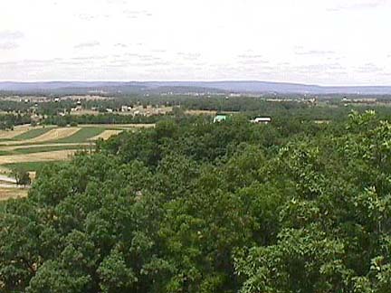 For the curious, I turned the camera backwards, away from the Gettysburg Park. If Lee and Longstreet had retreated, and sought out defensive terrain, what was available in their immediate rear? South Mountain is not too far back. There seems to be a ridge line running in front of the mountains proper. However, there seems nothing as prominant as Cemetery Hill, Culp's Hill, and the Round Tops. One can understand why Buford fought his delaying action to get the Union his "lovely ground."