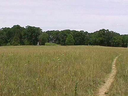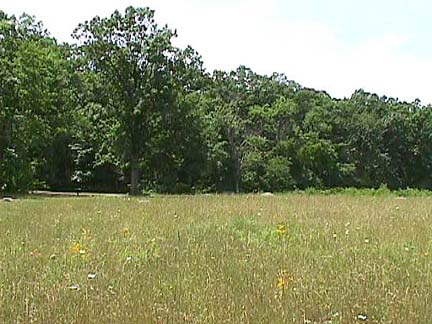 Panning from left to right across the Wheatfield. Sickles defended a shallow ridge line across the center of the field, the same ridge that extends from Devil's Den to the Wheatfield. It should be noted that while there are a few monuments in the Wheatfield proper, there are clumps of them to the left and right. Why cross open ground when one can flank about through the trees? These shots were taken from near the 148 Penn monument, near the southeast corner of the field.