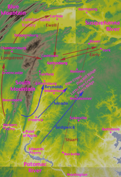Meade's march north was logical and perhaps unremarkable, except the rate of travel. The Gettysburg campaign was unusual for the amount of ground covered by the Army of the Potomac. With the exception of the Petersburg to Appomatox Court House final campaign, the AoP never moved so far so fast. The Gettysburg marches were long remembered as exhausting, with 20 to 30 miles covered per day a common achievement.