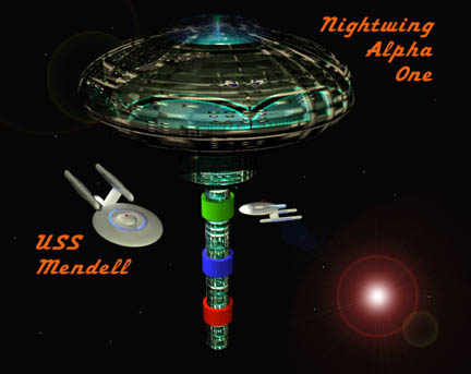 Five didn't last long on Mendell. In fact, she never got to board Mendell. For the first several weeks of the sim, before an XO had been assigned, we were running station Nightwing Alpha One alone, without her support ship, Mendell. I left not due to any Nightwing / Mendell difficulties, but because I was able to return to The Federation Council, with it's unique format. Unfortunately Mendell and the Council both run Wednesdays at 10 Eastern.